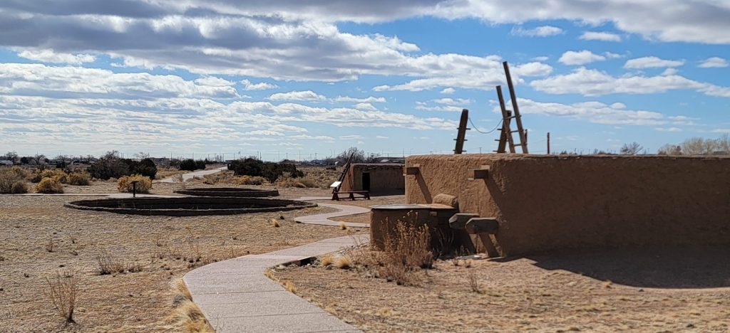 The small town of Bernalillo lies just north of Albuquerque off the I-25 Freeway. Driving down the bustling main avenue, a nondescript side street offers another detour into the distant past. A sharp turn between a brewery and a gas station leads past a campsite full of trailers and RVs, then through a bright white set of gates. A landscape of colorful brush and red soil greets you as the cacophony of roaring traffic and beeping horns fade from your ears and then quiets altogether. A moment later, you have stepped back in time, 500 years. The jarring shift in tone and landscape leaves you asking if a tornado has just picked you up and dropped you in a faraway land over the rainbow.