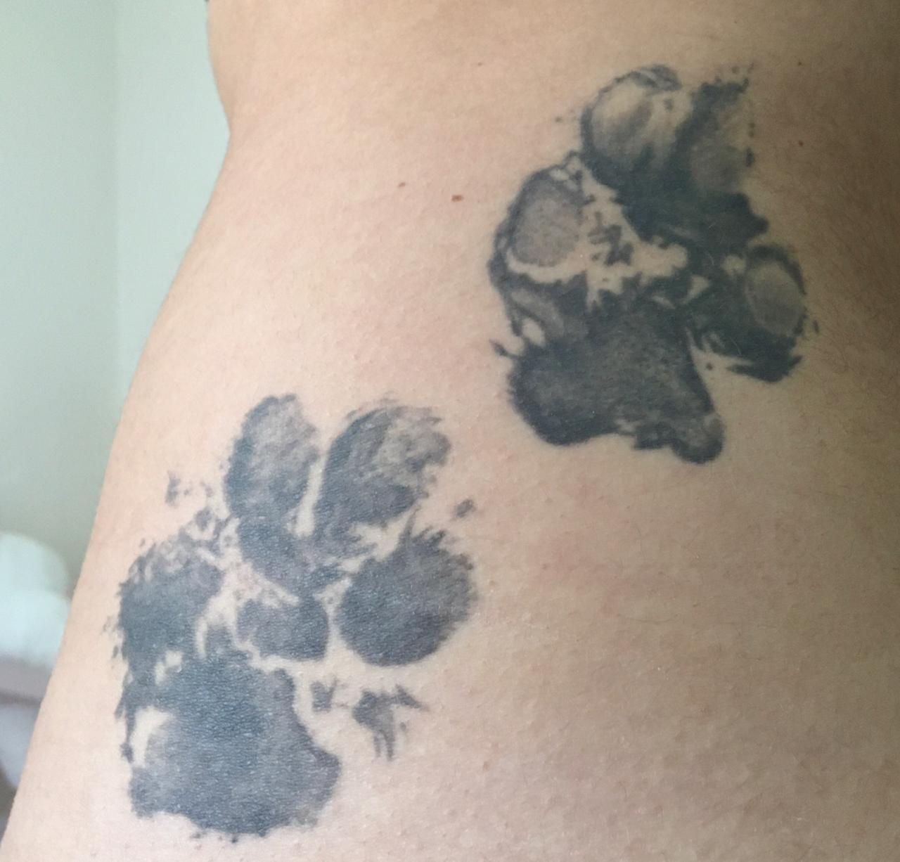 “I got a tattoo of the two of them in 2015 when they were still with us. We had twelve beautiful years together. The tattoo was done using their paw prints — like little inked fingerprints. At the time, Bila was already ill and ended up passing away. The following year, we lost Bob, too. But the tribute remains,” she recalls.